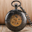 This pocket watch unveils its inner skeleton from its case, allowing you to admire the mechanical movement of the watch in action.